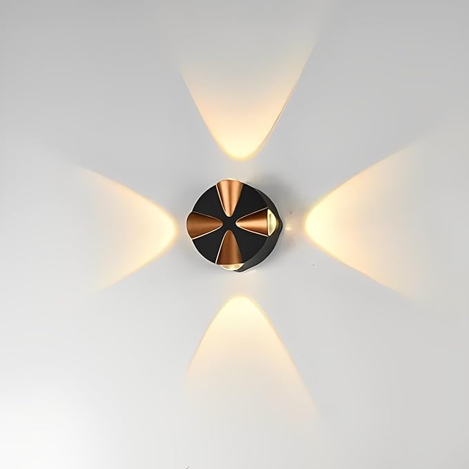 Ambert LED Indoor/Outdoor Majestic Diamond Black Gold Wall Light, Warm White Light, IP-65. Round, 4 Way Lights
