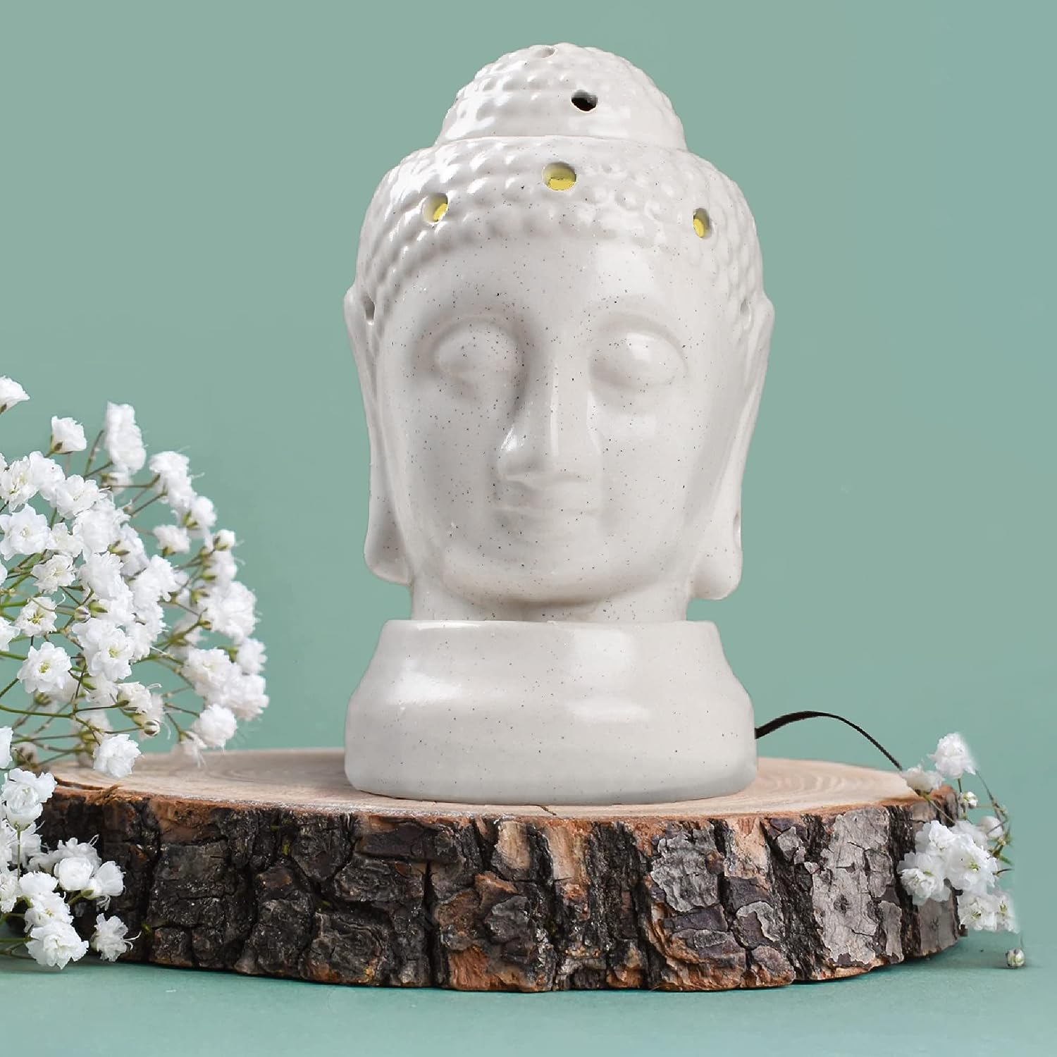 Ambert Buddha Ceramic Aroma Diffuser Electric Fragrance Oil Burner for Office, Home Décor, Off White