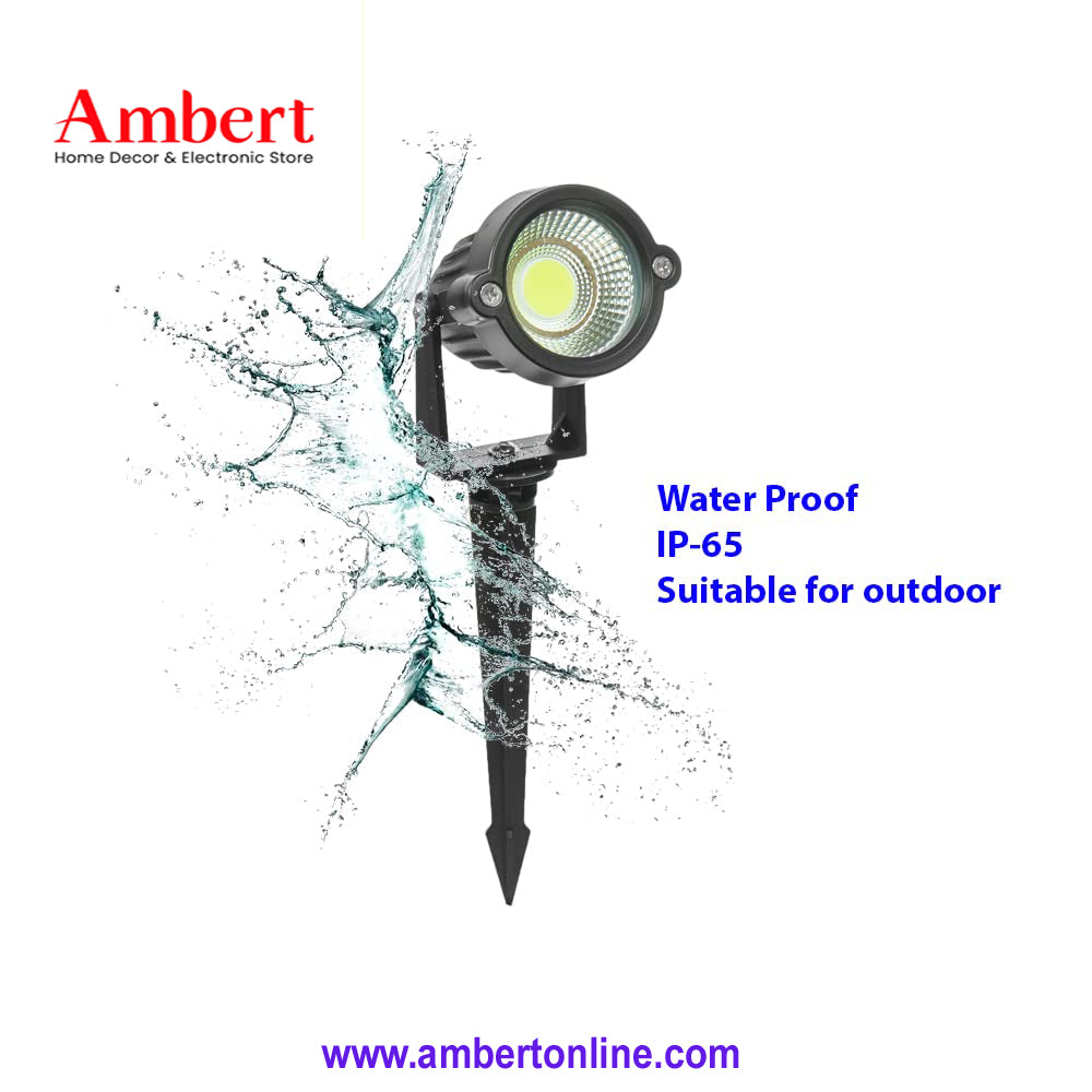 Ambert 5 Watt LED Waterproof Garden Light, 3000K Outdoor Spotlight with Spike Stand,IP65, Aluminum Body, Set of 1 (Warm White).