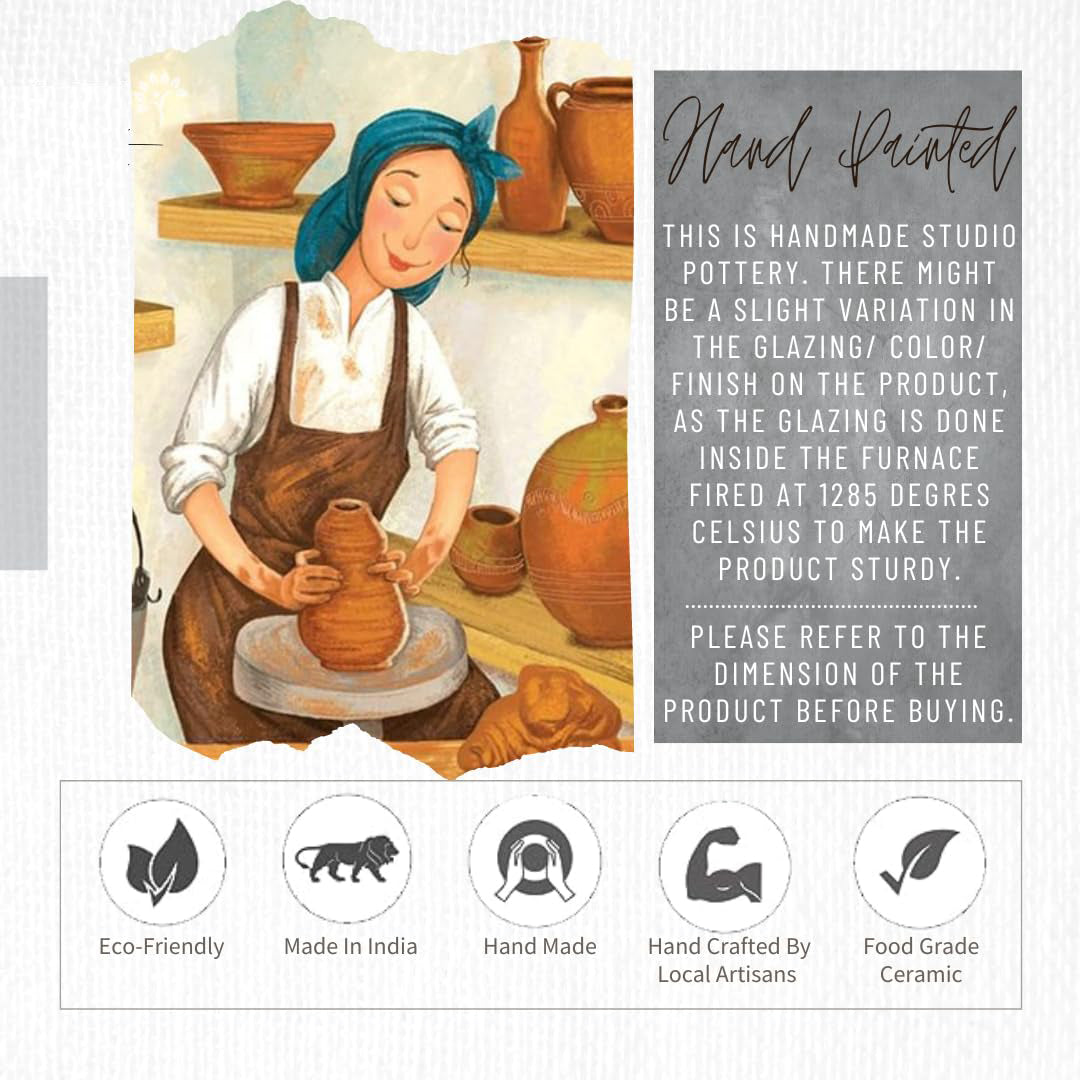 3. Notes: a) This is not a Bone China product. b) There could be a slight variation in the dual tone glazing/color/finish on the product, as the glazing is done inside the furnace fired at 1280 degree celsius to make the product sturdy and due to the natural property of the studio glazing it is impossible to predict the color of the glazing/finish which will eventually come on the product after the firing process.