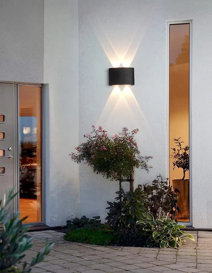 Ambert Indoor Outdoor Up Down Wall Lamps Led Light Shade Curved Black 4 Watts, Warm White, Die-Cast Aluminum